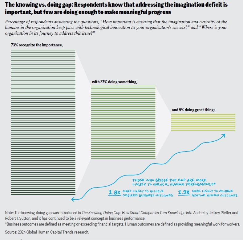 This year’s research also includes several trends that focus on how organisations can evolve their mindsets and approaches to meet new challenges. One of the challenges highlighted is the rapid advancement of artificial intelligence (AI) and generative AI, which is putting a spotlight on the importance of workers honing their enduring human capabilities like curiosity, to spark their imagination, and empathy, to understand customer needs.