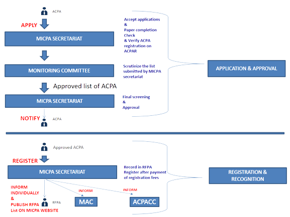 Non-MICPA members registered as ASEAN Chartered Professional Accountant (ASEAN CPA) with another participating ASEAN country, and wish to provide non-regulated professional accounting services in Myanmar may apply to be a Registered Foreign Professional Accountant (RFPA) with MICPA.